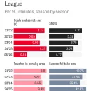 リバポFWサラー、衰える?GA数は半分、シュートも半分、ドリブル成功率は僅か10%